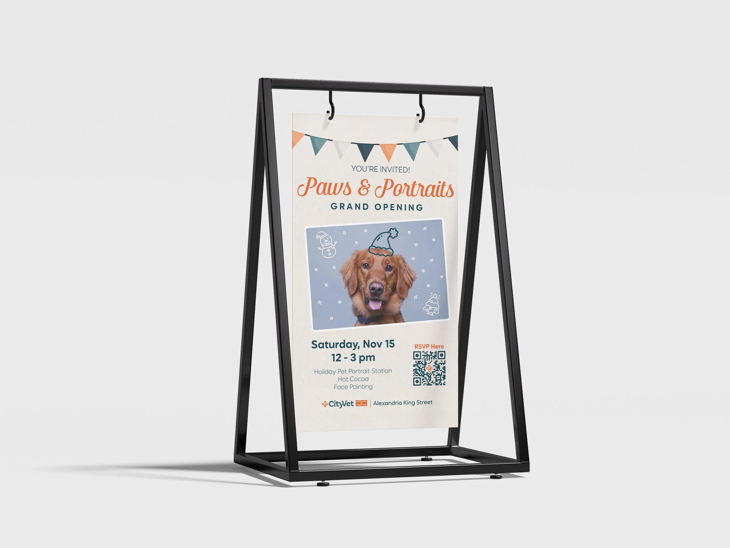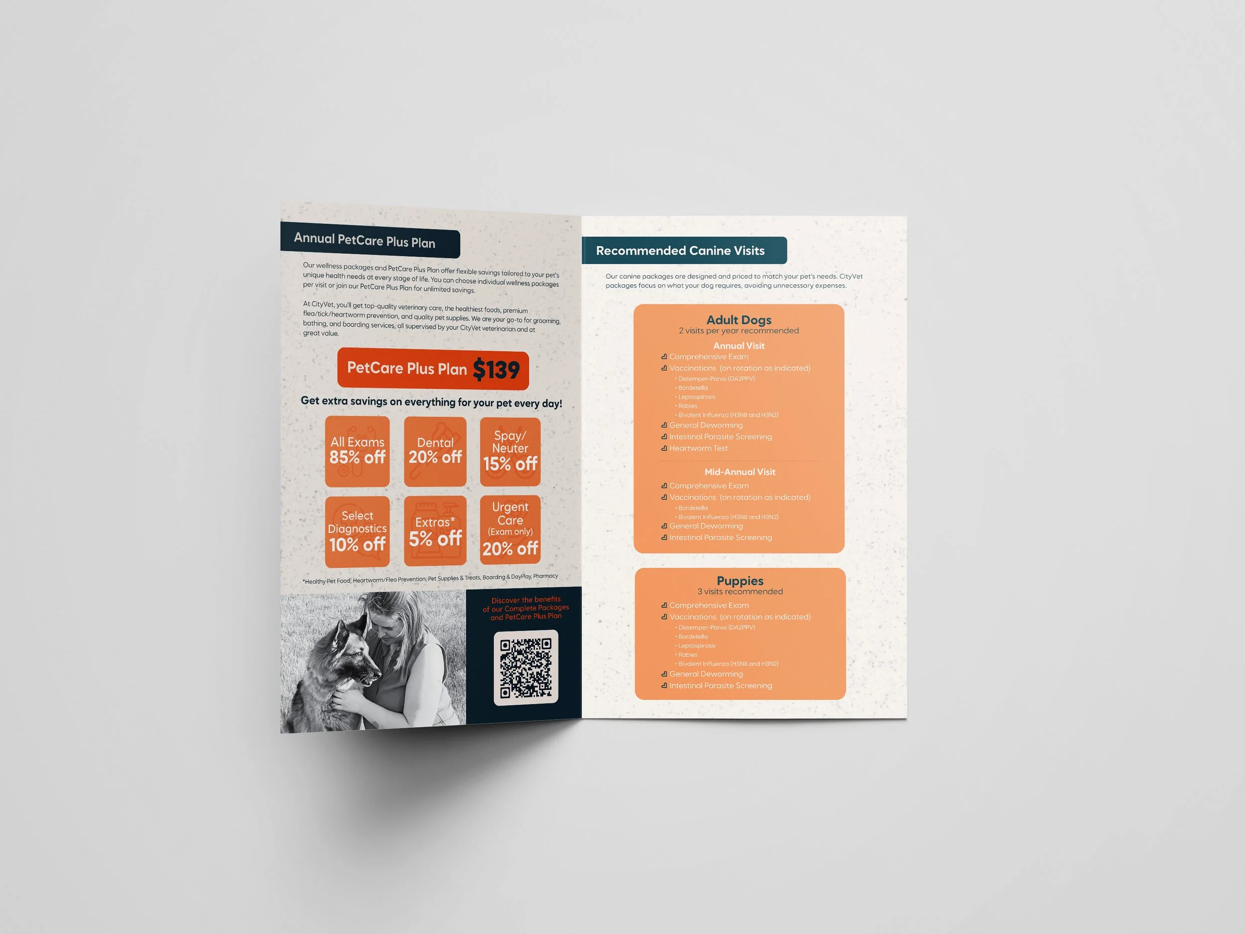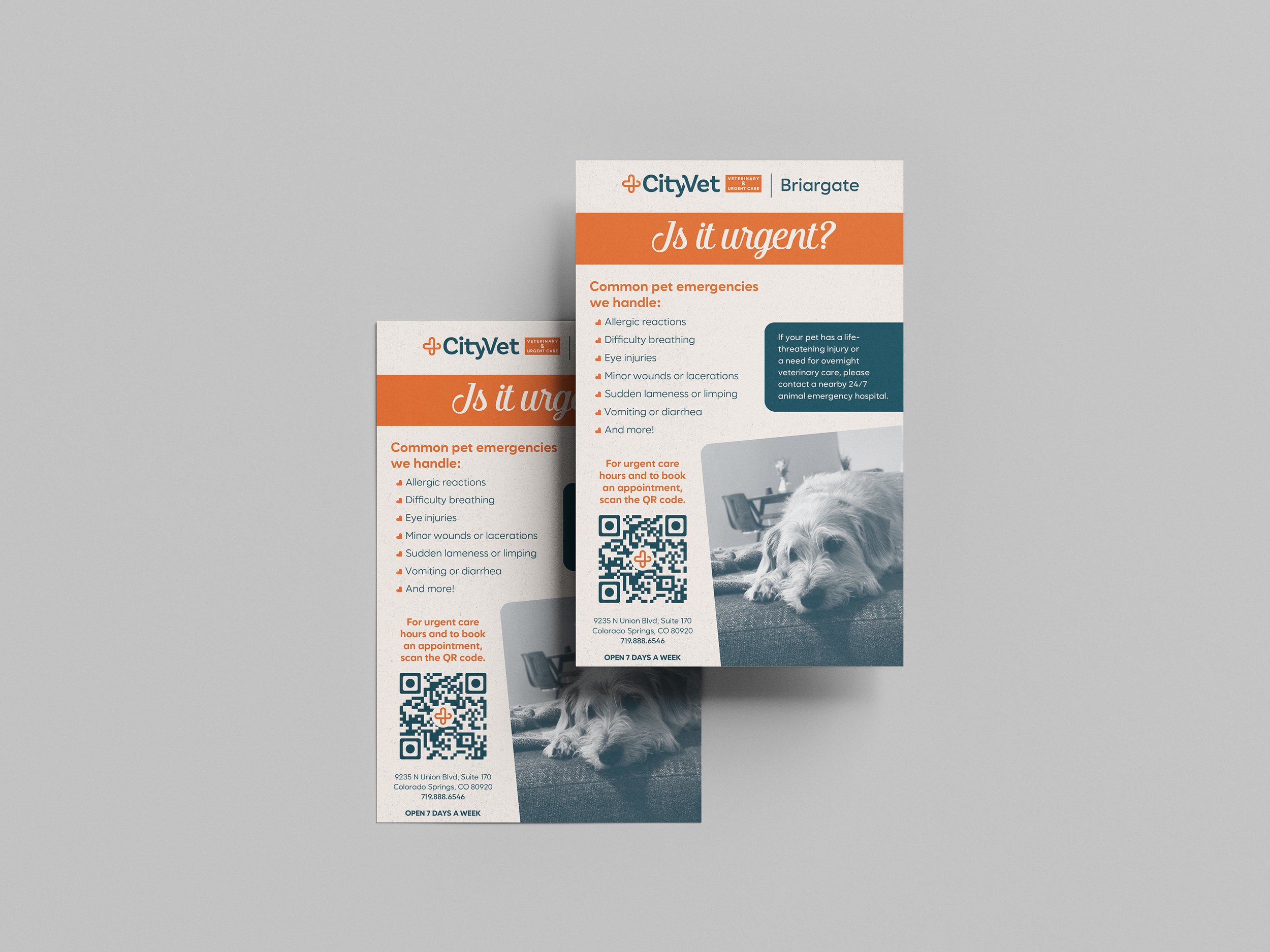 CityVet is a growing network of veterinary clinics providing accessible, high-quality care across multiple locations in the United States. As part of the internal marketing team, I developed and executed brand-aligned materials across print, digital, and in-clinic environments, ensuring consistency and clarity at scale.